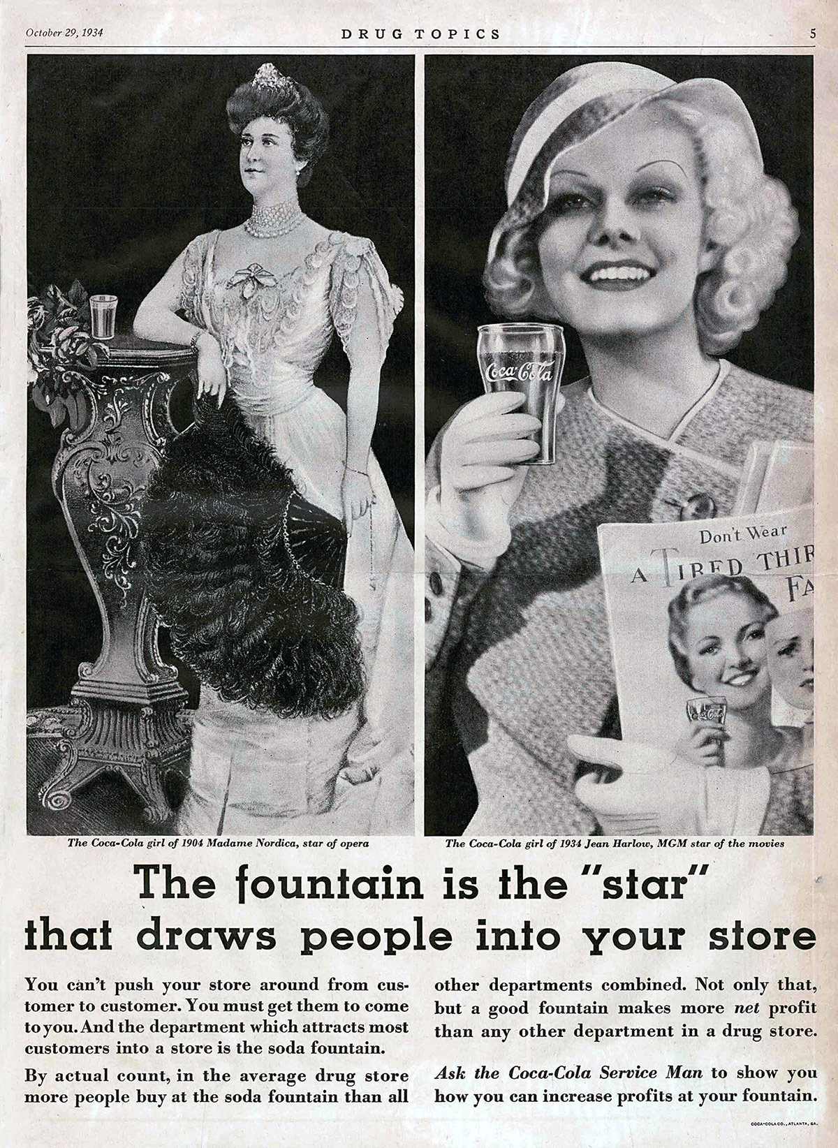1934-Coca-Cola-Ad-Actress-Jean-Harlowe-Next-to-Lillian-Nordica