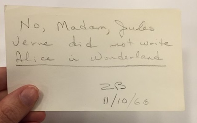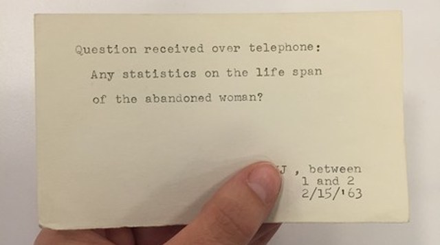 By writing on a little cue-card, which was researched and promptly answered by a real life human librarian.