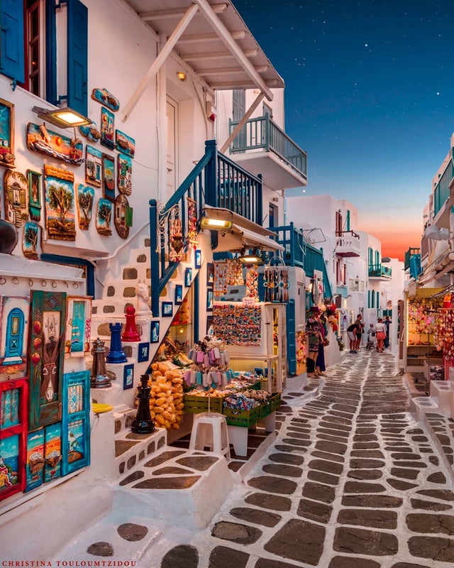 Bonus: A market in Santorini, Greece at Dusk
