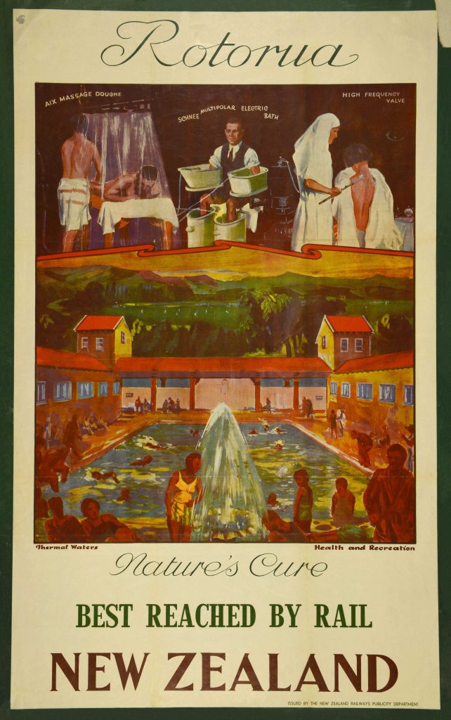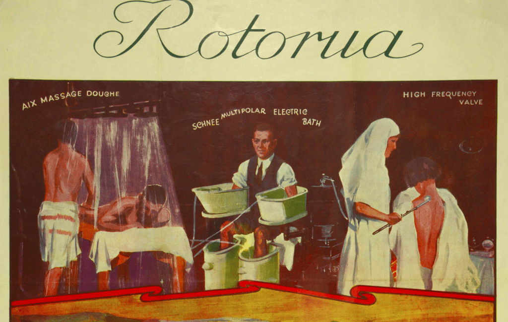New Zealand is no stranger to woo, religious cults and strange pseudoscientific ‘cures’ for various ailments. Have a look closely at this vintage 1932 poster from the New Zealand Railways, advertising Rotorua as a ‘health spa destination’ and peddling all sorts of odd ‘miraculous’ treatments! Then learn more about the unusual cults that are tucked away in the sleepy hillsides of New Zealand.