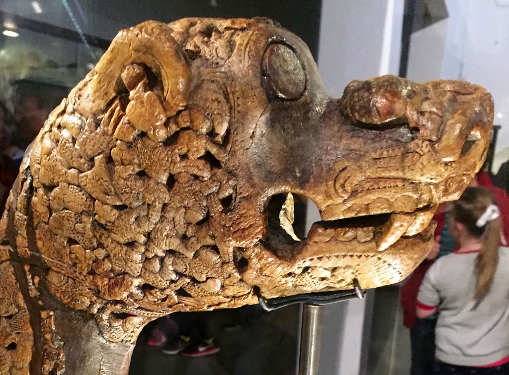 These exquisitely carved Viking animal heads were found on the Oseberg ship burial of two women and date from circa AD 834. The Viking ship burial contained five of these unique and mysterious carved wooden posts, their exact function remains unclear. The burial mound was excavated in 1904-5 in Norway.
