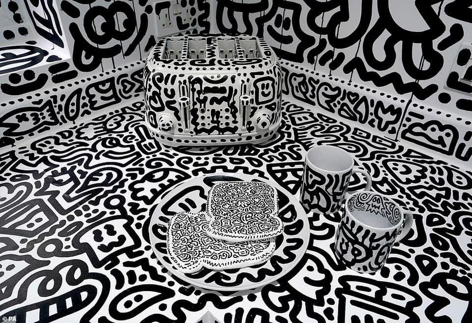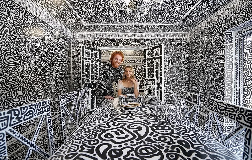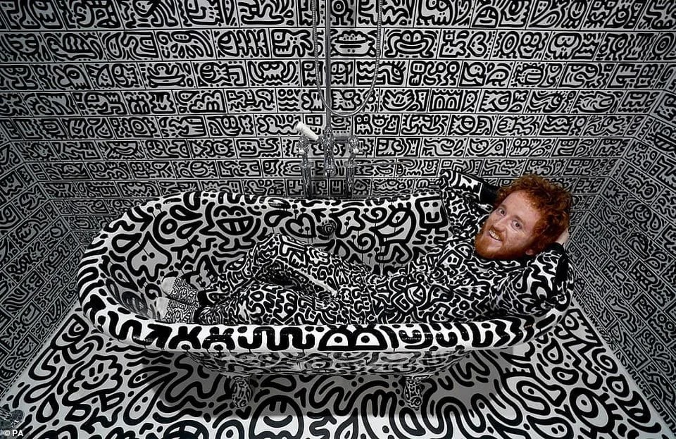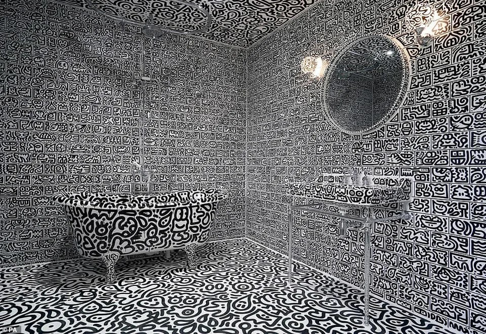 Artist Mr Doodle has spent two years covering every square cm of his £1.35 million home in doodles, working his way through 900 litres of emulsion, 401 cans of spray paint, 286 bottles of drawing paint, and 2,296 pen nibs.