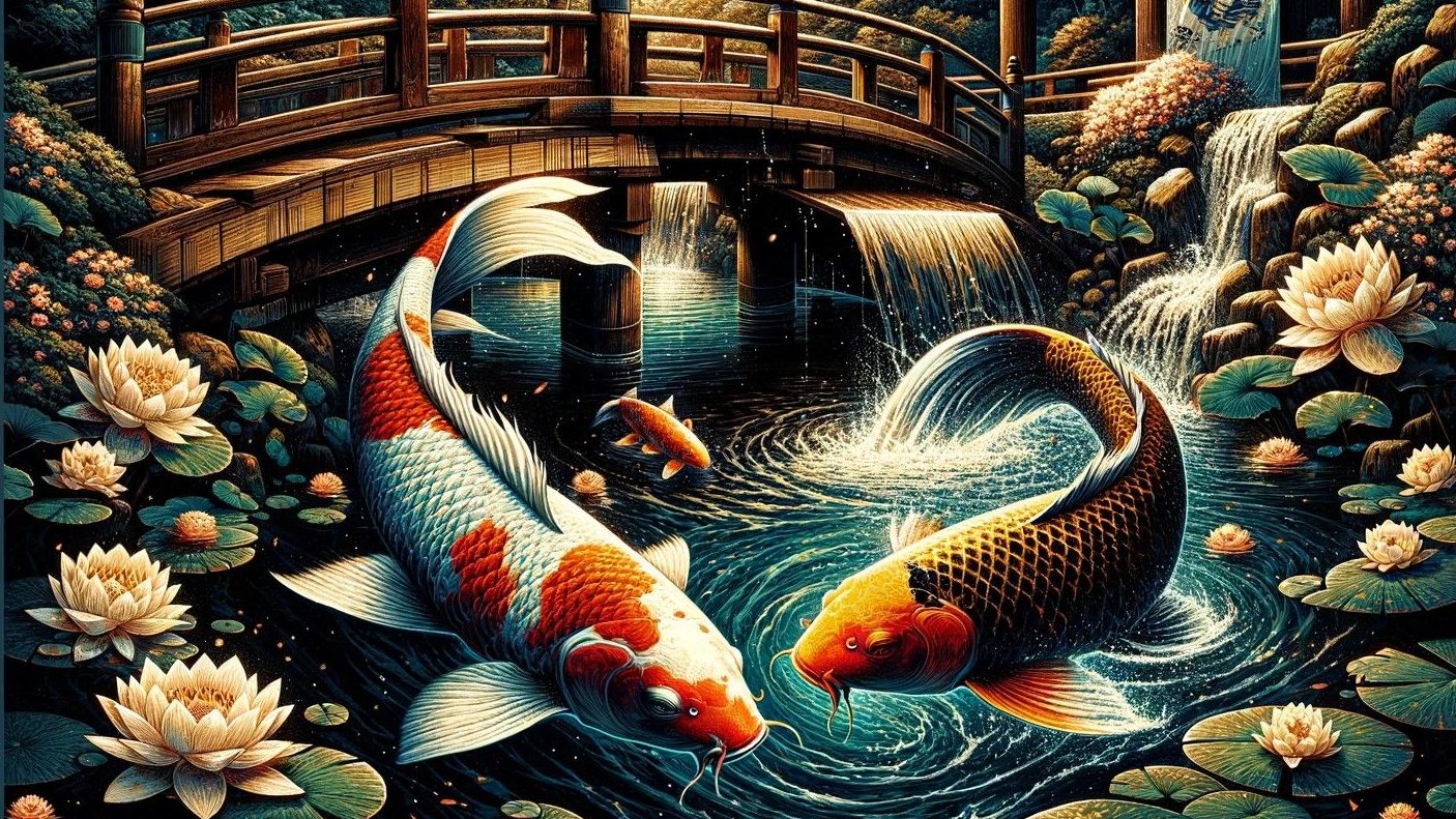 Koi carp, with their striking colours, represent courage and ambition. A popular legend speaks of their determination to swim upstream, a metaphor for overcoming adversity, aligning with Zen teachings on perseverance. The koi’s journey is a reminder of life’s constant flow and the need for resilience.