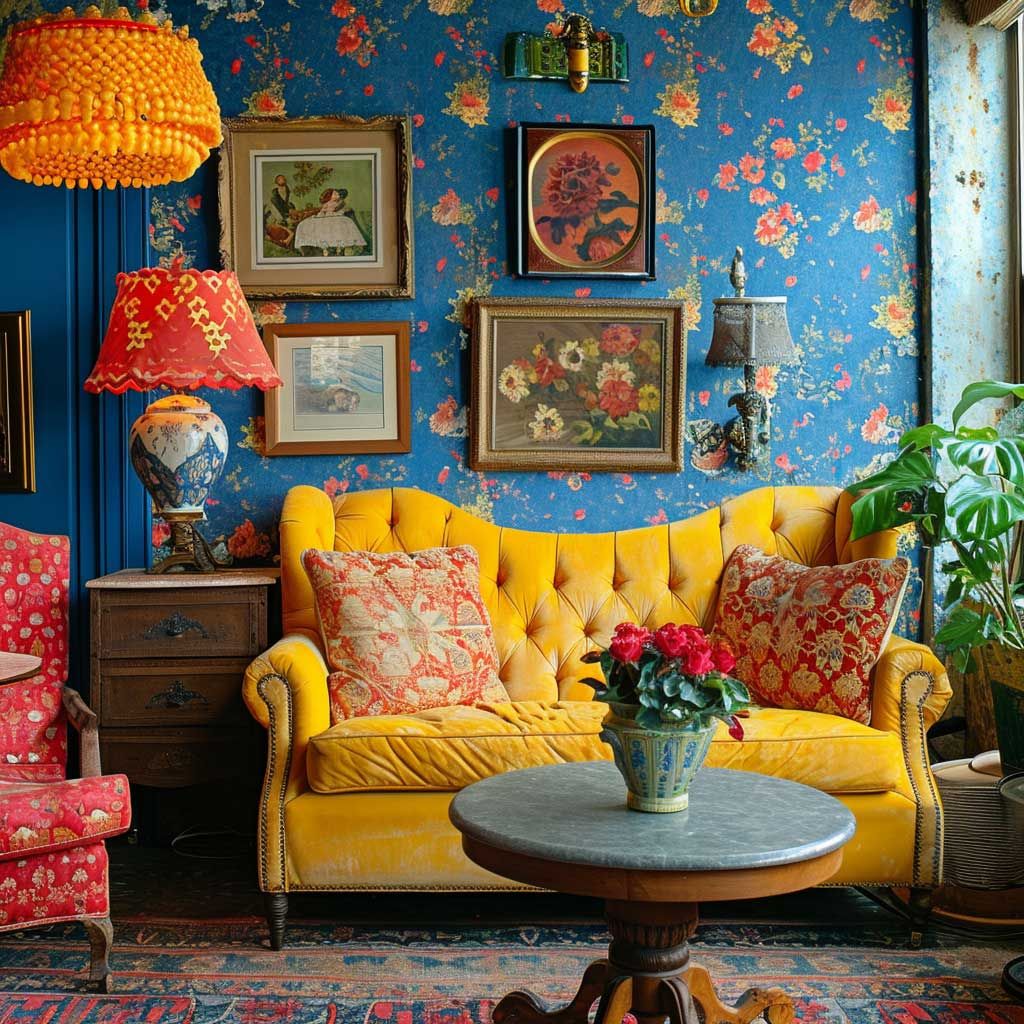Eclectic colourful maximalism design aesthetic