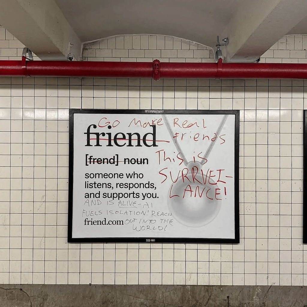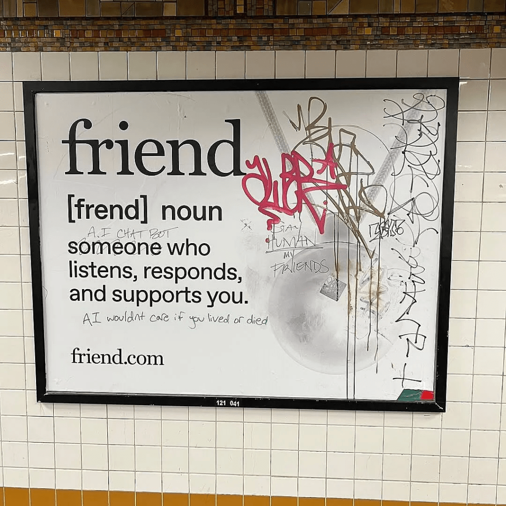 Insidious AI ‘friendship’ tech ad graffitied over by NYC locals