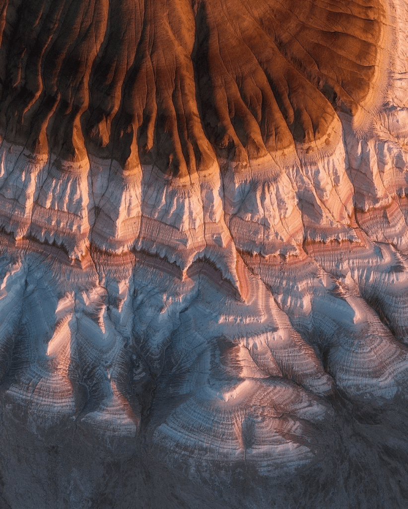 Bokty mountain is an inselberg (an isolated hill) that serves as a cross-section of the ocean floor from the ancient Tethys Ocean. The “striped” effect is caused by millions of years of cyclic sedimentation where different environmental conditions laid down alternating layers of white chalk, pink marl and red clay. Via Nature is F***g Lit on Reddit.