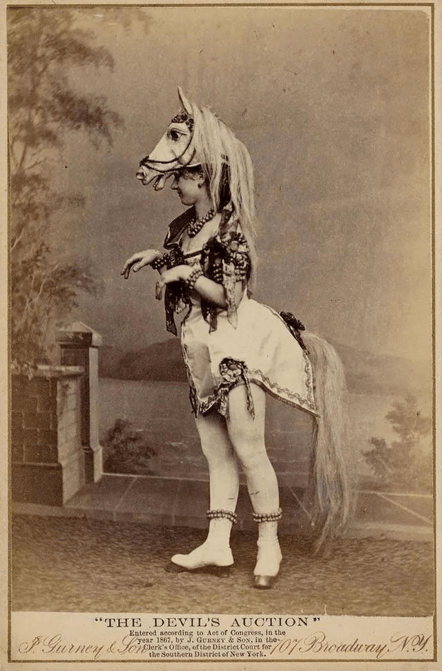 From the 1830s through the 1890s, London audiences flocked to a theatrical style commonly known as burlesque, but also sometimes labeled “travesty” or “extravaganza.” These shows reimagined celebrated operas, ballets, and dramas as irreverent musical comedies, frequently incorporating bawdy humour and carnivale and animalistic themes. Performers would lampoon the original productions by weaving in fragments of their scores and scripts while deliberately subverting their artistic conventions. The stage narrative often included strange animal costumes, historical garb and stage props, along with funny antics.
